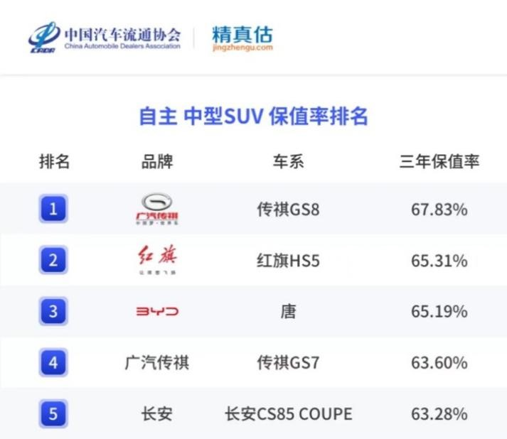 除了消費(fèi)者用終端銷量為這款車投票以外,在中國汽車流通協(xié)會(huì)發(fā)布的《中國汽車品牌保值率報(bào)告》中,廣汽傳祺GS8成為了2021和2022年度的自主中型SUV保值率第一的車型,而在2023年1月和3月的報(bào)告當(dāng)中,GS8的保值率也穩(wěn)居第一,這相當(dāng)于二手車行業(yè)也肯定了這款車的價(jià)值。