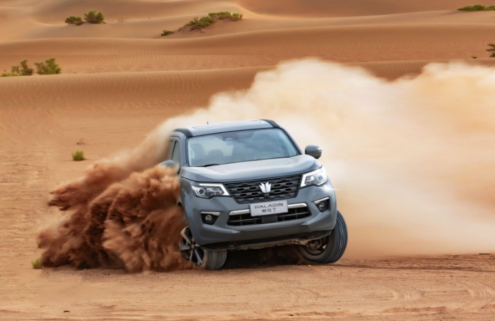 新帕拉丁裝備了2.0T黃金動力及采埃孚8AT變速箱,輸出最大功率168千瓦,扭矩最大360?!っ?,共有常規(guī)、運動、雪地、沙地、泥地等7種全地形駕控模式;同時,該車具備非承載式越野底盤、增強懸架與電控前后差速鎖+分動中央鎖加持的專業(yè)分時四驅(qū)系統(tǒng)的結(jié)合,讓扭矩分配更加靈活;該車具有坦克掉頭模式,最小轉(zhuǎn)彎半徑僅為5.2m。強勁的動力輸出、多場景的駕控模式以及“黑科技”的加持使新帕拉丁可以從容應(yīng)對脫困、攀爬等極限場景,帶用戶玩轉(zhuǎn)“不平”之路。