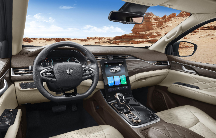 新車選用融合中國元素充滿力量感和品質(zhì)感的全新LOGO,將東方雅致與西方流線型設(shè)計相融,具有強烈的視覺沖擊力;車頭的寬闊前臉搭配熏黑中網(wǎng)的蜂窩設(shè)計讓整車極具辨識度;車身尺寸方面,新車的長、寬、高分別為4882mm、1850mm、1875mm,軸距為2850mm。