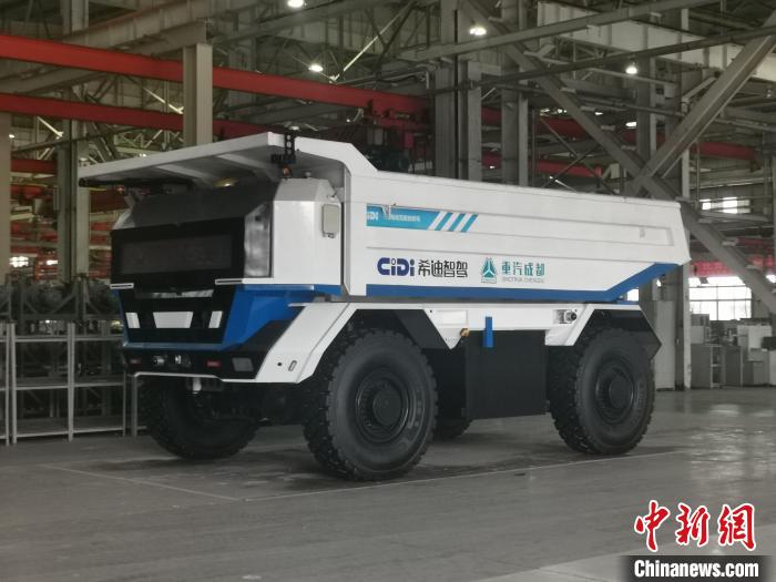 中國重汽集團(tuán)成都王牌商用車有限公司與希迪智駕共同打造的無人礦卡。(單鵬 攝)