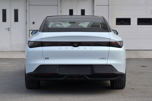 新車側(cè)面造型較為簡(jiǎn)潔、流暢,略微向下傾斜的車頂線條結(jié)合隱藏式車門把手和熏黑輪眉組件時(shí)尚感較強(qiáng)。車尾部分,極狐阿爾法S5配備了造型修長(zhǎng)的貫穿式LED尾燈組,搭配上翹的鴨尾式擾流板與底部寬大的后包圍組件在增強(qiáng)車尾視覺層次感的同時(shí)也極具辨識(shí)度。