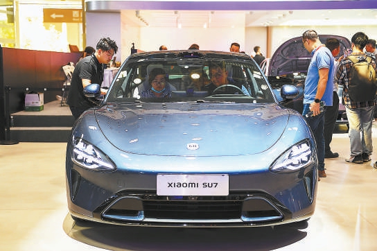 北京車(chē)企推出多款新車(chē),小米汽車(chē)展臺(tái)人氣爆棚。北京晚報(bào)記者 潘之望 攝
