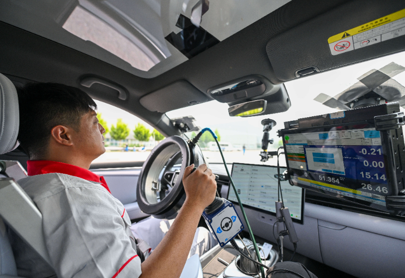 一輛智能網(wǎng)聯(lián)汽車正在做測(cè)試(6月19日攝)。新華社記者 孫凡越 攝