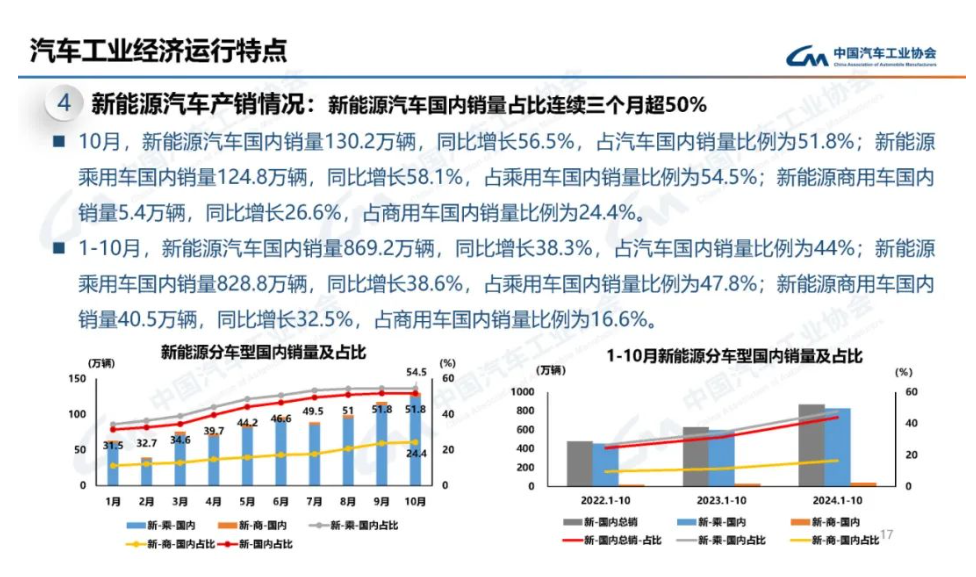 據(jù)中國汽車工業(yè)協(xié)會分析,進(jìn)入十月,國家以舊換新政策對汽車消費(fèi)拉動效應(yīng)明顯,多地車展與促銷活動如火如荼,企業(yè)新車型密集投放,推動車市熱度持續(xù)走高,10月汽車銷量環(huán)比同比均實(shí)現(xiàn)增長。其中,乘用車市場在多項(xiàng)積極因素推動下持續(xù)向好,新能源汽車和汽車出口依然保持較快增長。