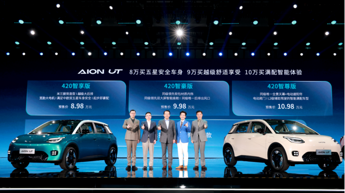 央廣網(wǎng)北京1月15日消息(記者 姜鵬)1月6日,埃安UT鸚鵡龍正式開(kāi)啟預(yù)售,新車(chē)共推出420智享版、420智豪版、420智尊版3個(gè)版本,預(yù)售價(jià)8.98萬(wàn)元-10.98萬(wàn)元。