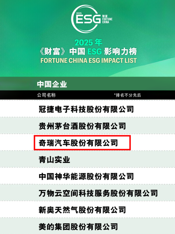 技術(shù)創(chuàng)新驅(qū)動(dòng)奇瑞回歸價(jià)值本源,以全球企業(yè)公民身份踐行ESG理念。無(wú)論是奇瑞帶來(lái)的全球首款熱效率突破48.1%的鯤鵬天擎混動(dòng)發(fā)動(dòng)機(jī),還是密集上市的新能源汽車產(chǎn)品;無(wú)論是奇瑞向聯(lián)合國(guó)兒童基金會(huì)捐款開展國(guó)際兒童教育項(xiàng)目、與世界自然保護(hù)聯(lián)盟(IUCN)合作開展“珍愛自然”奇瑞×IUCN全球項(xiàng)目,又或是著眼全球最迫切的減碳議題,率先在全價(jià)值鏈推行降碳管理,奇瑞一直積極踐行ESG理念,關(guān)于ESG的積極實(shí)踐和創(chuàng)新成果也贏得了社會(huì)廣泛認(rèn)可。在5月《財(cái)富》發(fā)布的“2025年中國(guó)ESG影響力榜”中,奇瑞汽車憑借自身ESG領(lǐng)域的卓越表現(xiàn)入榜,這也是奇瑞汽車自2024年以來(lái),第二次入選該榜單。