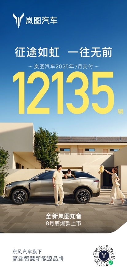 嵐圖汽車CEO盧放表示:“在用戶的支持下,嵐圖汽車7月延續(xù)高質(zhì)量發(fā)展態(tài)勢,嵐圖夢想家穩(wěn)居銷量冠軍,全新上市的嵐圖FREE+也快速獲得市場認(rèn)可,這進(jìn)一步堅(jiān)定了我們的發(fā)展信心。8月,我們將更進(jìn)一步提速生產(chǎn)交付、升級(jí)服務(wù)體驗(yàn)、加強(qiáng)用戶交流,并推出新產(chǎn)品——全新嵐圖知音,為用戶帶來更多優(yōu)質(zhì)選擇,為品牌發(fā)展注入更強(qiáng)動(dòng)能。”