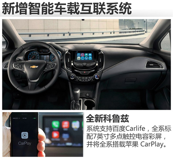 在配置方面,新車搭載了新一代MyLink智能車載互聯(lián)系統(tǒng),支持百度Carlife,全系標配7英寸多點觸控電容彩屏,并將全系搭載蘋果 CarPlay。全新科魯茲還將新一代安吉星Onstar智能行車伙伴和4G LTE原裝集成車載Wi-Fi,可同時接入多個設(shè)備。