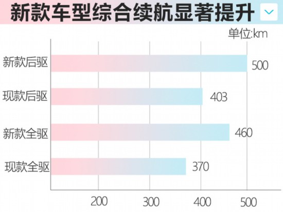 MARVEL X是榮威在2018年推出的一款A(yù)+級(jí)純電動(dòng)SUV,在售車(chē)型包括兩電機(jī)后驅(qū)、三電機(jī)全驅(qū)兩款車(chē)型,綜合續(xù)航里程分別為403km、370km。日前,網(wǎng)上車(chē)市獲得了新款MARVEL X的相關(guān)消息,新車(chē)針對(duì)續(xù)航進(jìn)行了大幅提升,兩電機(jī)后驅(qū)、三電機(jī)全驅(qū)兩款車(chē)綜合續(xù)航分別可達(dá)500km、460km。