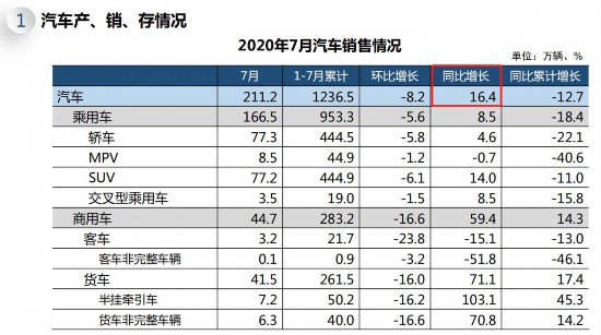 人民網(wǎng)北京8月11日電(王紫)8月11日,據(jù)中國(guó)汽車工業(yè)協(xié)會(huì)發(fā)布月度數(shù)據(jù)顯示,7月我國(guó)汽車產(chǎn)銷形勢(shì)總體穩(wěn)定,銷量達(dá)211.2萬(wàn)輛,同比增長(zhǎng)16.4%,其中商用車同比增速明顯。