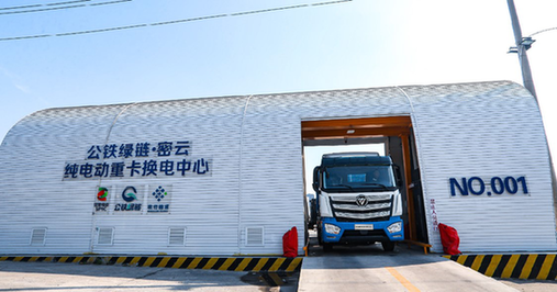 這其中,有聚焦礦山(能源)場景的換電重卡產(chǎn)品,其不僅定制打造鐵路干線+新能源重卡接駁、鐵路干線+專用線運輸、新能源重卡運輸?shù)娜N綠色運輸模式,還實現(xiàn)了國內(nèi)首例大宗物資在市內(nèi)通過“鐵路干線+新能源重卡接駁”的全過程零排放綠色運輸,并交付公鐵綠鏈使用;有聚焦城市物流及末端配送場景的智藍新能源純電動輕卡、VAN類產(chǎn)品,并在湖南區(qū)域完成上市發(fā)布;還有已經(jīng)交付房山區(qū)政府、大興機場的新能源抑塵車和機場運輸車等。