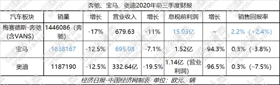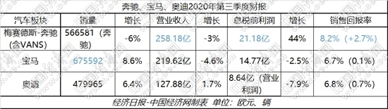 在此帶動下,BBA汽車業(yè)務一改二季度的虧損、下滑,三季度各主要財務指標均呈現(xiàn)明顯回升,息稅前利潤及銷售回報率等更是實現(xiàn)由虧損轉向盈利,寶馬、奧迪在銷量上也分別達到8.6%和6.4%的同比正增長。BBA前三季度各指標,也因此實現(xiàn)了一定程度的提升。