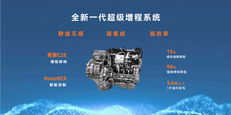 在2024年廣州車展上,全新一代賽力斯超級增程系統(tǒng)正式發(fā)布,該系統(tǒng)基于“賽翼(C2E)增程架構”與“RoboREX智能控制技術”打造,實現(xiàn)了靜謐無感、高集成、高效率三大行業(yè)領先優(yōu)勢。