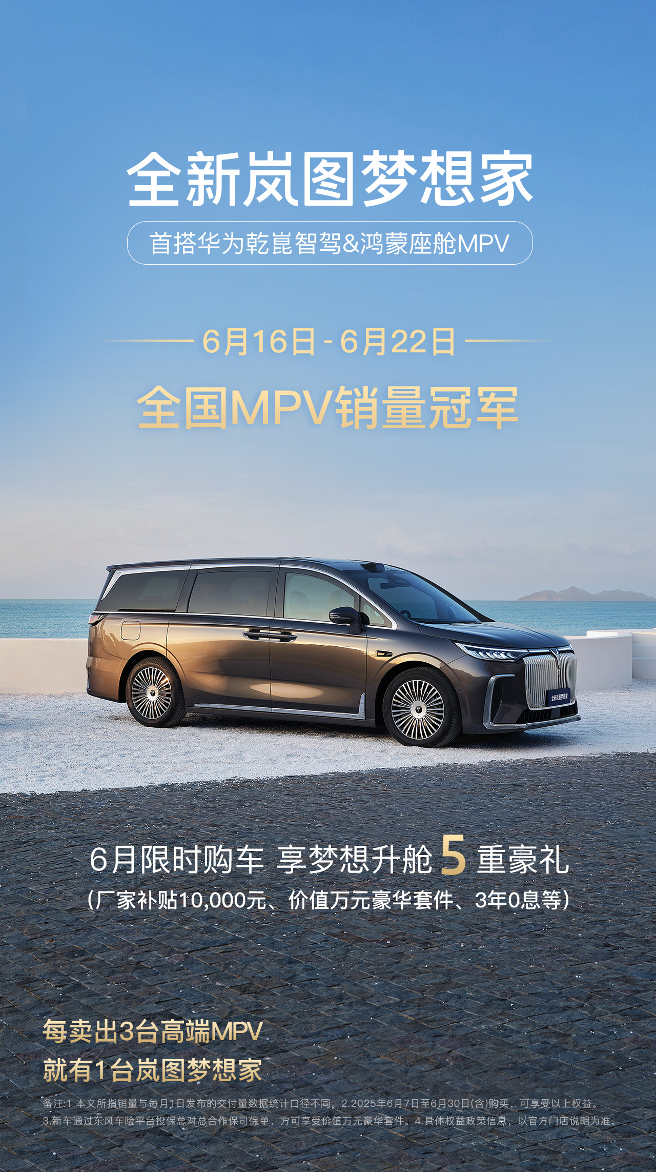 嵐圖夢(mèng)想家6月官宣限時(shí)銷售政策,立省5.5萬元現(xiàn)金以及0元升級(jí)價(jià)值萬元豪華套件,在政策與產(chǎn)品力雙重疊加下,嵐圖夢(mèng)想家成為當(dāng)下MPV市場熱銷產(chǎn)品。