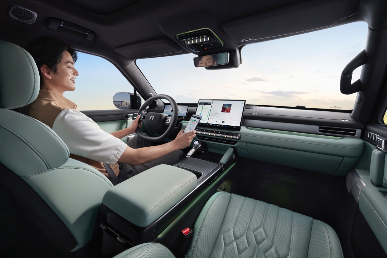 在互聯(lián)體驗上,猛士M817并不滿足于“夠用即可”,整車首搭鴻蒙座艙5,配備10.25英寸儀表屏、15.6英寸中控屏、W-HUD抬頭顯示、流媒體內(nèi)后視鏡、飛航旋鈕、后排控制屏,以萬物互聯(lián)的智慧基因賦能高效通勤,車機(jī)內(nèi)置豐富的應(yīng)用生態(tài),華為智能語音系統(tǒng)讓交互更隨心,聽音樂,看電影,還能一鍵投屏打造私人影院,戶外大片一鍵生成、即時分享,解鎖全場景互聯(lián)移動出行樂趣。而乾崑車云服務(wù)提供的遠(yuǎn)程診斷與OTA升級功能,讓車輛能始終保持最佳狀態(tài)。