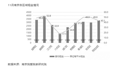 南京我愛我家研究院相關(guān)人士介紹,11月橋北、麒麟等套均租金較低的商圈成交熱度較高,重回南京租房熱門商圈的榜首和榜眼,套均租金分別為2310元和2034元,遠(yuǎn)低于全市平均租金水平。