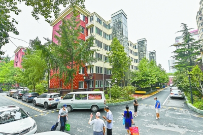 蓮花池西里6號院改造后煥然一新,電梯平層入戶,綠樹映襯紅墻,居住條件顯著改善。本報記者 鄧偉攝