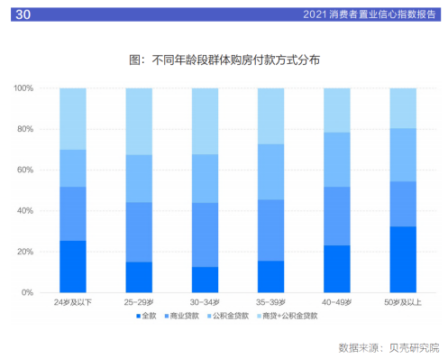 《報(bào)告》還顯示,消費(fèi)客群普遍通過(guò)加杠桿方式購(gòu)房,受調(diào)群體中全款購(gòu)房比例僅占 18.1%。對(duì)比不同年齡段群體看,25-39歲群體對(duì)杠桿的依賴度較高,貸款購(gòu)房比例超過(guò)8成,其中30-34年齡段群體貸款比例最高,達(dá)87.4%。80前群體資金積累相較充足,對(duì)杠桿的依賴度相對(duì)較低,貸款比例未超過(guò)8成。95后父母多為60、70后,而這兩代人已經(jīng)有一定的財(cái)富積累,在購(gòu)置房產(chǎn)時(shí),有能力對(duì)子女進(jìn)行資助,因此購(gòu)房群體中全款購(gòu)房比例相對(duì)較高。從購(gòu)房群體的需求類(lèi)型看,首次置業(yè)群體購(gòu)房杠桿較高,貸款比例達(dá)86.6%。 (責(zé)任編輯:蔡文斌) |