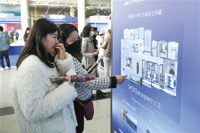 2月8日,購(gòu)房者在2023齊魯(濟(jì)南)春季房地產(chǎn)展示交易會(huì)現(xiàn)場(chǎng)了解房屋信息。新華社記者 朱崢 攝