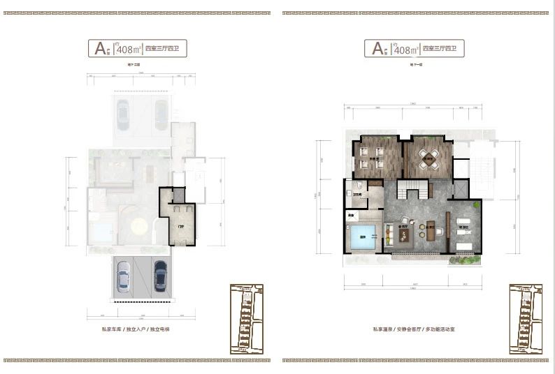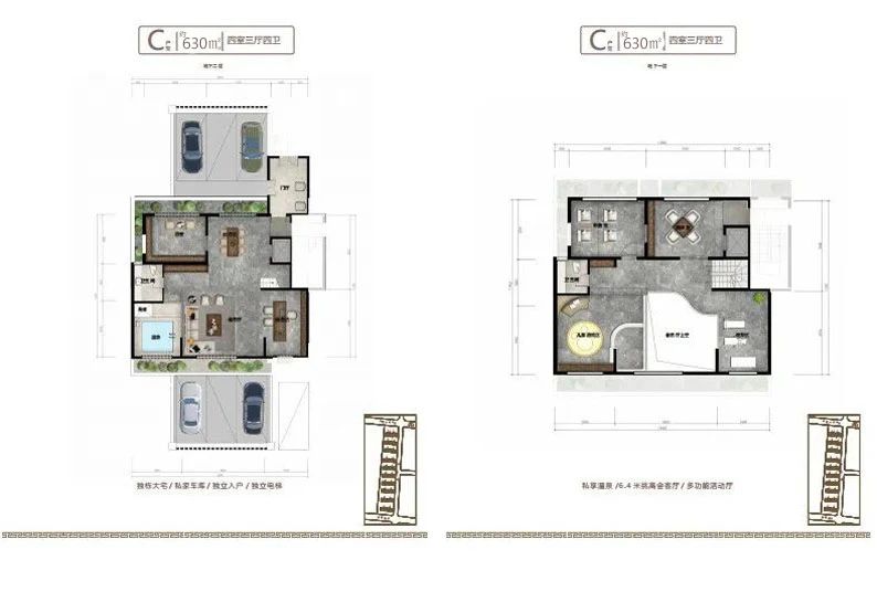 地下室設計不同于傳統(tǒng)地下室,只能為儲藏室使用,而小區(qū)地下室層高和地上建筑面積層高一致,達到了3.2米,沒有空間壓抑感,在南北庭院都設有1.2米的通風采光井,室內(nèi)鋪設地暖及溫泉管道,上下水和衛(wèi)生間,私密性特強,可以設計桑拿房,健身房,保姆間,洗衣房,酒窖及休閑娛樂等多功能區(qū)域,對于鄰居既不會產(chǎn)生噪音干擾,更不會打擾到家人的休息,在提高了生活品質(zhì)的同時也不會由空間局促感,地下室可以直通地下私家車庫,車庫層高4.2米,寬約7-10米,至少可以容納家用汽車三輛。