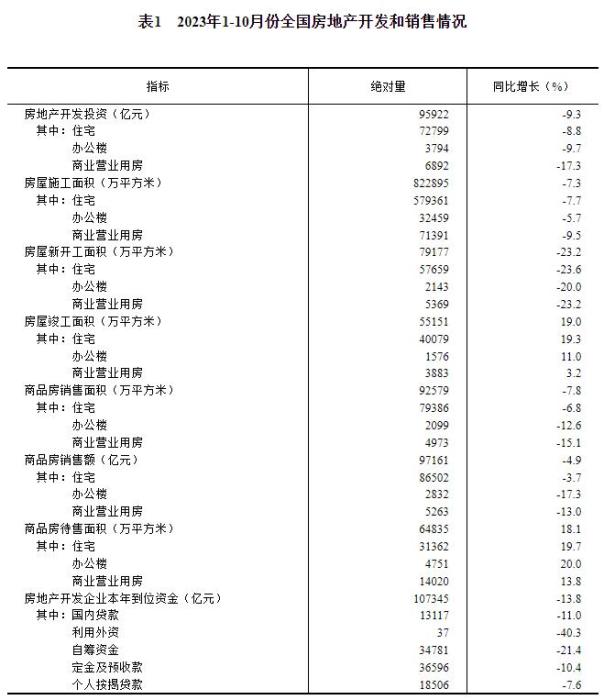 中新網11月15日電 據(jù)國家統(tǒng)計局網站消息,國家統(tǒng)計公布2023年1—10月份全國房地產市場基本情況。