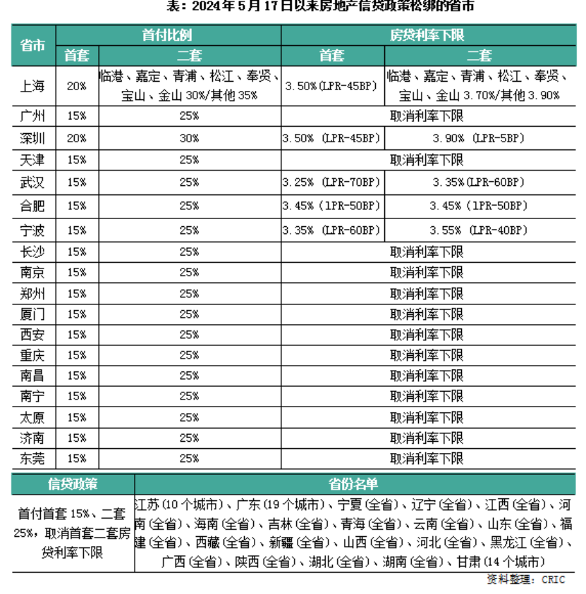5月17日,央行將首套、二套房首付比例下限再下調5個百分點,調整后分別為15%、25%。此后據克而瑞研究中心統計,山東、福建、河南等超22個省份已經落地執(zhí)行,全國超過200個城市15%首套房最低首付比例。