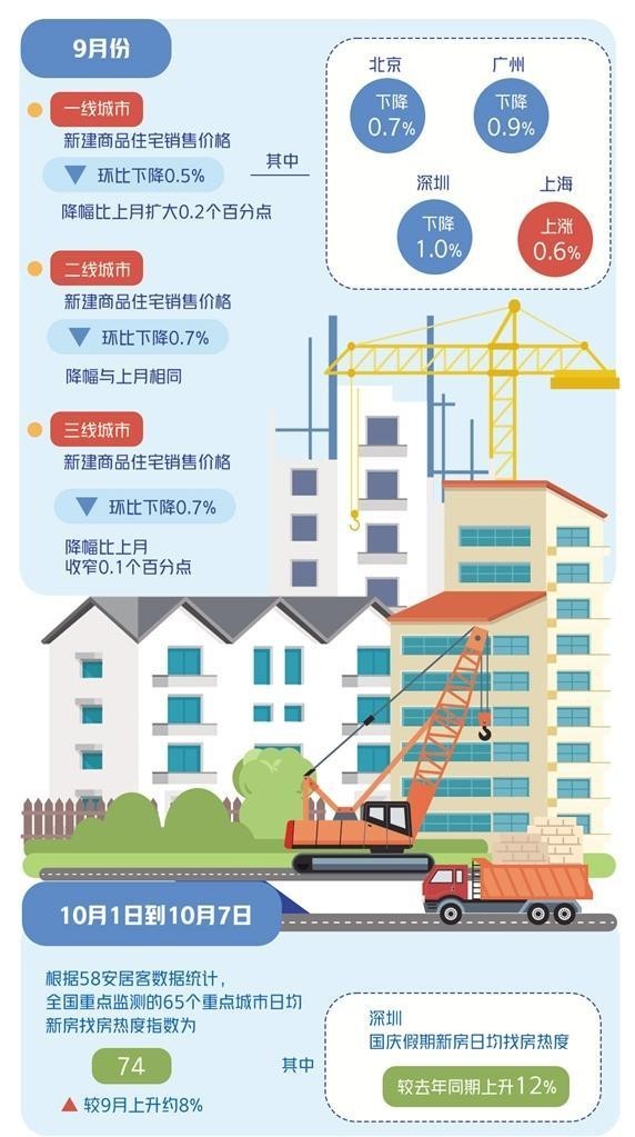 9月26日,中央政治局會(huì)議定調(diào)“要促進(jìn)房地產(chǎn)市場止跌回穩(wěn)”,釋放出“穩(wěn)地產(chǎn)”信號(hào)。隨后,一線城市集中優(yōu)化樓市政策,廣州全面取消限購,北京、上海、深圳優(yōu)化限購、限貸政策,北京、上海明確將及時(shí)取消普宅認(rèn)定標(biāo)準(zhǔn),深圳取消限售,上海、深圳增值稅免征年限“5改2”,帶動(dòng)國慶假期樓市熱度顯著提升。