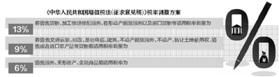 財(cái)政部、國家稅務(wù)總局昨天發(fā)布《中華人民共和國增值稅法(征求意見稿)》(以下簡稱《征求意見稿》),將不動(dòng)產(chǎn)租賃服務(wù)、不動(dòng)產(chǎn),轉(zhuǎn)讓土地使用權(quán)的適用稅率調(diào)整為9%。