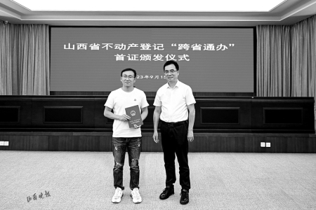 9月15日,山西省不動產(chǎn)登記“跨省通辦”啟動暨晉津首證頒發(fā)儀式舉行,山西省自然資源廳和天津市規(guī)劃和自然資源局簽訂《晉津不動產(chǎn)登記“跨省通辦”合作框架協(xié)議書》,并發(fā)出首本“跨省通辦”不動產(chǎn)權(quán)證書。此舉標(biāo)志著晉津兩地不動產(chǎn)登記“跨省通辦”正式開啟,兩地的企業(yè)、群眾在本地即可通過“跨省通辦”窗口辦理不動產(chǎn)登記業(yè)務(wù)。