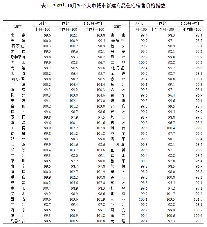 中新網(wǎng)11月16日電 據(jù)國家統(tǒng)計(jì)局網(wǎng)站消息,國家統(tǒng)計(jì)局16日公布2023年10月份70個大中城市商品住宅銷售價(jià)格變動情況。數(shù)據(jù)顯示,10月份,70個大中城市商品住宅銷售價(jià)格環(huán)比下降城市個數(shù)略增,各線城市商品住宅銷售價(jià)格環(huán)比下降、同比漲跌互現(xiàn)。