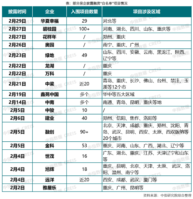 根據(jù)中指研究院監(jiān)測,城市房地產(chǎn)融資協(xié)調(diào)機制建立以來,鄭州、成都、重慶、昆明等城市上報項目數(shù)量均超200個,部分出險房企也有多個項目進入白名單,在“推送-反饋”工作閉環(huán)下,出險房企的項目獲得融資支持的機會也有望增加,有利于進一步穩(wěn)定市場預期。