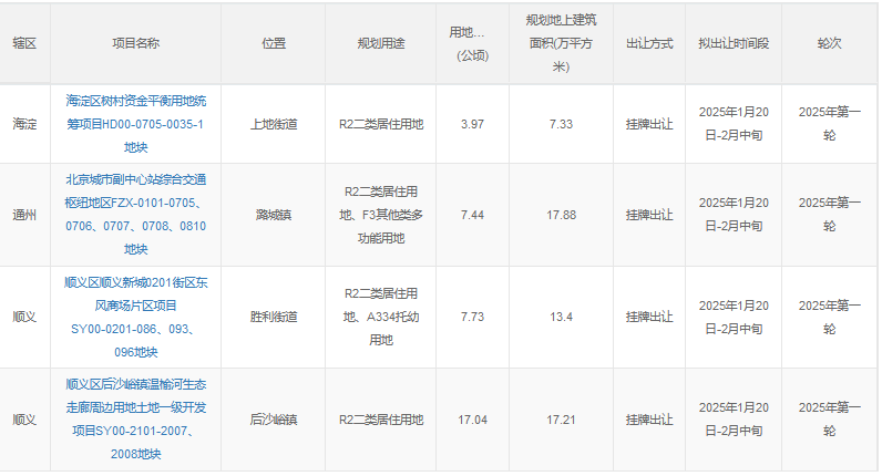 2025年北京土地市場以需定供,商品住宅用地采用了彈性指標(biāo),以加快構(gòu)建房地產(chǎn)發(fā)展新模式。1月20日,北京市規(guī)自委聯(lián)合北京市發(fā)改委共同印發(fā)實(shí)施《北京市2025年度建設(shè)用地供應(yīng)計劃》。該計劃顯示,2025年,北京合理控制新增房地產(chǎn)用地供應(yīng),計劃商品住宅用地240-300公頃;同時,加大保障性住房用地供應(yīng),較2024年增加15公頃,為475公頃;此外,北京土地供應(yīng)向重點(diǎn)功能區(qū)、產(chǎn)業(yè)園區(qū)、軌道交通站點(diǎn)周邊等重點(diǎn)區(qū)域傾斜。 商品住宅用地彈性供應(yīng)240-300公頃 “嚴(yán)控增量、優(yōu)化存量、提高質(zhì)量”,依然是北京這一年土地供應(yīng)的主基調(diào)。2025年北京供地計劃安排建設(shè)用地供應(yīng)總量3165-3665公頃,較往年基本持平。土地供應(yīng)向重點(diǎn)功能區(qū)、產(chǎn)業(yè)園區(qū)、軌道交通站點(diǎn)周邊等重點(diǎn)區(qū)域傾斜,提升土地資源配置效率最優(yōu)化和效益最大化。 具體來看,住宅用地安排955-1015公頃,相比去年1060公頃的出讓計劃,今年住宅供地有所減少。其中,商品住宅用地240-300公頃,而去年這一指標(biāo)是不低于300公頃。 北京市規(guī)自委相關(guān)負(fù)責(zé)人強(qiáng)調(diào),北京結(jié)合市場需求安排商品住宅用地彈性指標(biāo)240-300公頃。堅持以需定供,加大優(yōu)質(zhì)地塊供應(yīng),優(yōu)先保障軌道站點(diǎn)周邊及城中村改造資金平衡商品住宅用地供應(yīng);加大站城融合力度,適度提高軌道站點(diǎn)周邊用地建設(shè)強(qiáng)度,打造微中心;推動“好房子”試點(diǎn)實(shí)施,提升住房品質(zhì)。 北京2025年加大了保障性住房用地供應(yīng)力度,強(qiáng)化存量改造,安排保障性住房用地475公頃、較2024年增加15公頃,統(tǒng)籌推進(jìn)城中村安置房、配租型、配售型等保障性住房供應(yīng)。 在產(chǎn)業(yè)用地方面,安排470-510公頃。其中,為支撐保障發(fā)展新質(zhì)生產(chǎn)力,安排工業(yè)用地230公頃,較2024年增加30公頃。而且優(yōu)化完善高精尖產(chǎn)業(yè)用地彈性年期出讓政策,鼓勵“先租后讓”。結(jié)合市場發(fā)展需求情況,調(diào)整商服用地、倉儲用地指標(biāo)規(guī)模,彈性安排商服用地50-70公頃,較2024年下降10-30公頃;倉儲用地指標(biāo)50公頃,較2024年下降50公頃。 在空間引導(dǎo)方面,北京市建設(shè)用地中心城區(qū)、平原新城地區(qū)、生態(tài)涵養(yǎng)區(qū)圈層供地比為25:60:15,按照不低于80%的比例推動產(chǎn)業(yè)用地向產(chǎn)業(yè)發(fā)展重點(diǎn)領(lǐng)域、重點(diǎn)功能區(qū)集聚,重點(diǎn)保障智能制造、產(chǎn)業(yè)互聯(lián)網(wǎng)、醫(yī)藥健康等產(chǎn)業(yè)用地需求。而為落實(shí)總規(guī)減量要求,2025年度全市安排城鄉(xiāng)建設(shè)用地凈減量任務(wù)540公頃,落實(shí)二綠地區(qū)減量騰退任務(wù)350公頃,繼續(xù)引導(dǎo)供應(yīng)存量建設(shè)用地占比65%左右。 此外,北京將聚焦軌道站點(diǎn)周邊、重點(diǎn)功能區(qū)等優(yōu)勢地區(qū),加快完善配套設(shè)施建設(shè),提升土地供應(yīng)品質(zhì)和價值;統(tǒng)籌推進(jìn)“平急兩用”公共基礎(chǔ)設(shè)施建設(shè)與點(diǎn)狀配套設(shè)施用地供應(yīng),2025年鄉(xiāng)村產(chǎn)業(yè)用地安排彈性指標(biāo)為60-80公頃,較2024年提升10公頃。 新年首推海淀樹村“熱地”