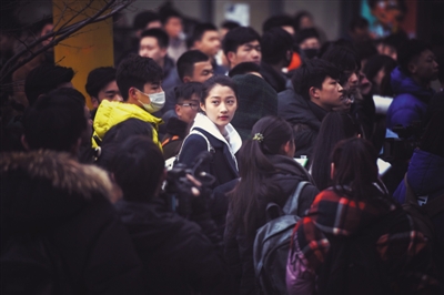 除了給人印象最深的關曉彤,于先生認為趙嘉敏也蠻漂亮的。雖然他一開始并不知道這個女孩是誰,后來發(fā)現(xiàn)除了記者還有很多粉絲也去圍觀,才知道她是SNH48組合的成員之一?!八似?,氣質吸引人之外,身上有一種學生的那種不諳世故?!?/p>