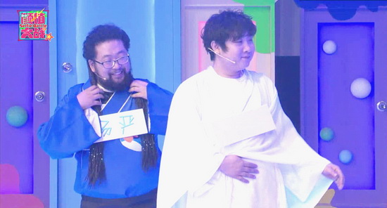 一開(kāi)場(chǎng)兩人被發(fā)糖——“選妃”可抱美人歸。遮擋住臉龐的各位“妃子”穿著古風(fēng)裙,俏麗非凡的樣子讓兩位嘉賓欣喜不已,想著總算可以和漂亮的姑娘們搭檔了,誰(shuí)料半路殺出王守英,頭戴瓜子身披綠紗,一身自制衣服就劫走了喬杉,看著這二人配對(duì)成功,修睿還做著自己會(huì)和小美女搭檔的美夢(mèng),然而張大大直接判決,修睿配對(duì)小甜甜。