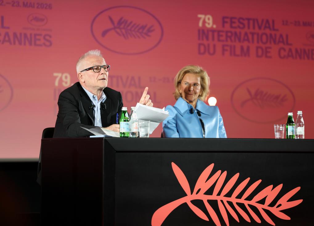 4月9日,戛納電影節(jié)主席伊麗絲·克諾布洛赫(右)與戛納電影節(jié)藝術(shù)總監(jiān)蒂埃里·弗雷莫出席在法國巴黎舉行的新聞發(fā)布會(huì)。新華社記者 鄔惠我 攝