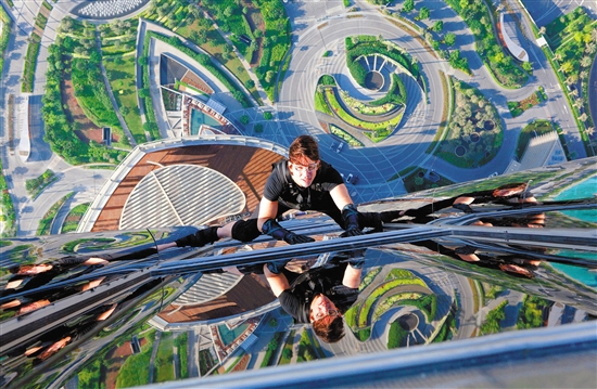 攀登迪拜塔 《碟中諜4》里,阿湯哥將自己“蜘蛛人”的愛(ài)好發(fā)揮到一個(gè)新高點(diǎn)。該片最大“名場(chǎng)面”便是阿湯哥徒手攀登迪拜塔,最后他還悠哉游哉地在迪拜塔頂拍了張“到此一游”照。