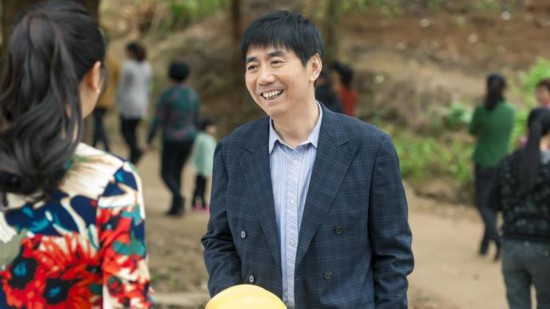 在扶貧劇《我的金山銀山》中,演員范明第一個出場。大樹下,由他飾演的村主任范星火身披西裝外套,打著斜紋領(lǐng)帶,戴一黑色墨鏡,腳蹬旅游鞋,面向村民侃侃而談。