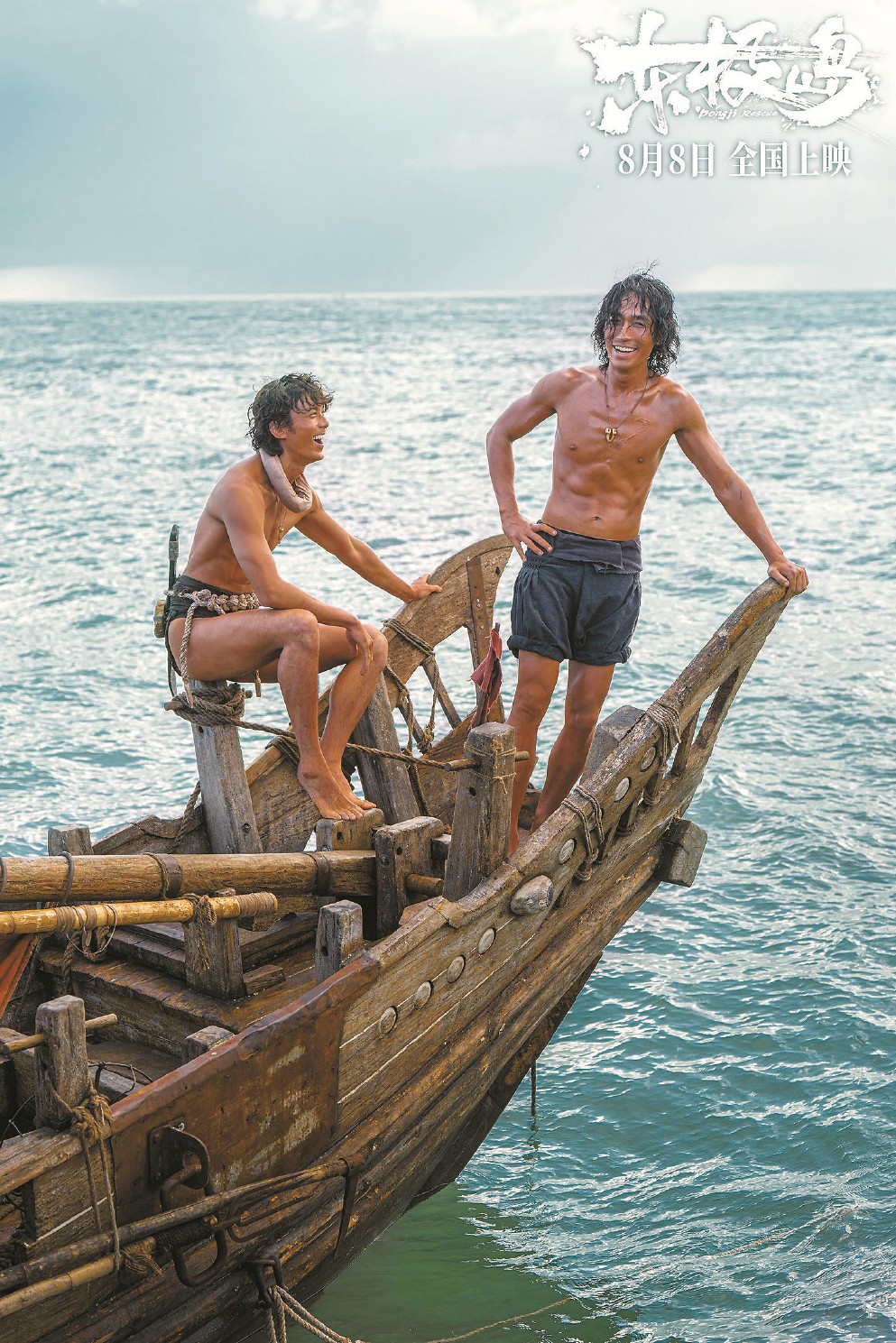 在僅有263人的封閉小島上,健康性感,彪悍狂放的阿赑與阿蕩顯得如此格格不入。為此,影片巧妙地——或許也略顯無(wú)奈地,將兩人設(shè)定為吳老大從海上“撿來(lái)”的孤兒,既規(guī)避了交代人物成長(zhǎng)背景的繁瑣,又通過(guò)兩人可能是“海盜后代”的身份,來(lái)合理化解釋兄弟倆超乎常人的水性、驚人的戰(zhàn)斗力。女主角阿花則是吳老大從人販子手上解救的養(yǎng)女,也可歸入“無(wú)根浮萍”型人物。當(dāng)三位主要角色都因缺乏家庭背景和成長(zhǎng)經(jīng)歷,而與當(dāng)?shù)貪O民群體形成了顯著區(qū)隔,這種處理方式暴露出商業(yè)類型片在改編真實(shí)歷史事件時(shí)常見(jiàn)的困境:拘泥于史實(shí)容易顯得平淡呆板,放飛想象力則會(huì)破壞題材的嚴(yán)肅性。