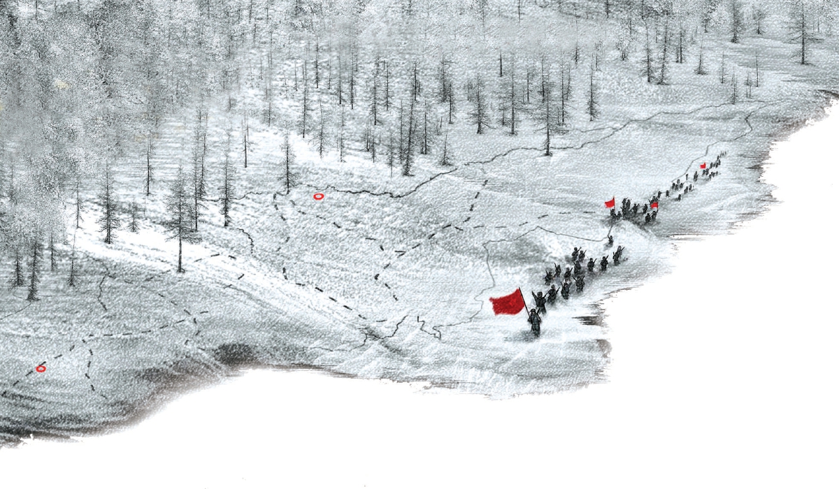 每年很長時間,這里的氣候不適合室外生存,冬季氣溫更低至零下三四十度,有人的耳朵、手指、腳趾甚至?xí)粌龅?。日軍將當?shù)卮迕駨娭萍芯幼。孤?lián)得不到食物、衣服等。正如《歸隊》中所呈現(xiàn)出來的那樣:戰(zhàn)士們輕易不能生火取暖,深可沒腰的積雪限制了我方移動,行蹤又很容易被發(fā)現(xiàn)——敵人會沿著雪地上的腳印,進行追擊。