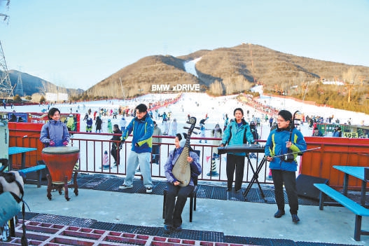 北京民族樂團“空降”軍都山滑雪場。