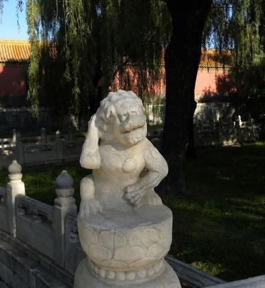 故宮有座斷虹橋,雖處在非開放區(qū),但卻因橋上萌態(tài)十足的石獅子聲名遠(yuǎn)播。其中一只“護(hù)襠萌獅”其照片去年更為網(wǎng)友熱傳。只見它一爪摸著后腦勺,一爪護(hù)在襠部,嘴巴微張,雖然經(jīng)過日久風(fēng)吹,多少有些面目模糊,但抓耳撓腮、欲說還休的“憋屈”樣依然萌態(tài)十足。