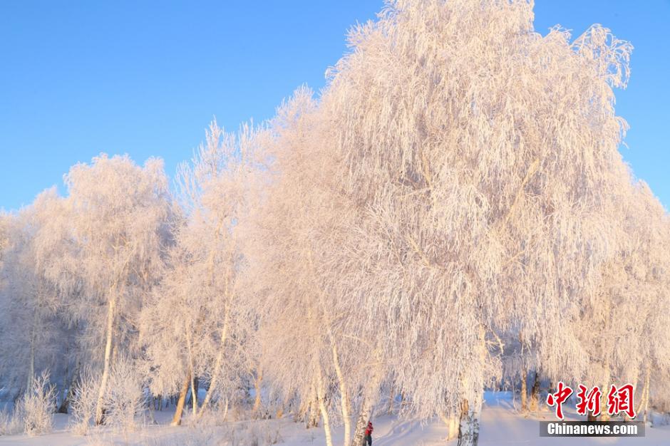 新疆阿勒泰罕見降雪后 現(xiàn)千里霜掛美景