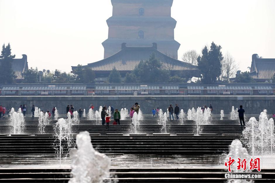 近日,大雁塔噴泉在音樂和噴泉形式上進(jìn)行了改版,并增設(shè)收費(fèi)觀景臺。此舉引發(fā)民眾熱議,認(rèn)為景區(qū)占用觀看噴泉最有利的位置設(shè)置座椅,屬于變相收費(fèi),并且一場噴泉表演只有20分鐘,收費(fèi)之舉過于“小家子氣”。 張遠(yuǎn) 攝
