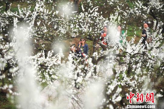 3月8日,重慶銅梁“花果山”成片的李子樹、梨樹、櫻桃樹等多種果樹的花朵競(jìng)相綻放,漫山遍野潔白的花朵形成了一道美麗的風(fēng)景線,吸引不少市民前來踏青。