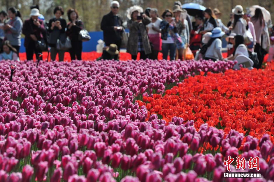 3月9日,昆明撈魚河濕地公園22畝約60萬株郁金香盛開,吸引了大量的游客和市民排隊前來賞花、拍照。據(jù)了解,撈魚河濕地公園種植的郁金香均是從荷蘭進口的,花期為25天。自向民眾開放以來,每天平均有兩萬人進園賞花。中新社記者 任東 攝