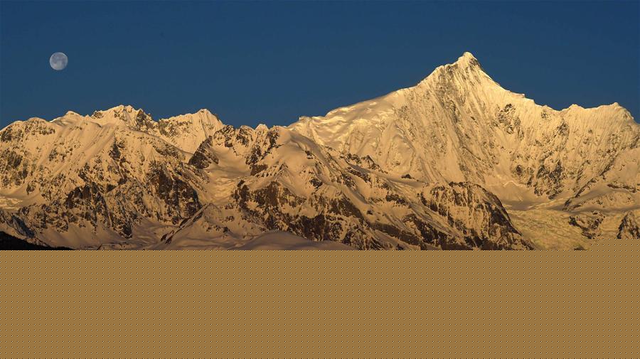 這是3月25日清晨拍攝的梅里雪山“日月同輝”景觀。梅里雪山位于滇藏交界的云南省迪慶藏族自治州德欽縣境內(nèi),是世界自然遺產(chǎn)“三江并流”的主要自然景觀之一。梅里雪山常年云霧籠罩,太陽(yáng)光只在少數(shù)天晴的清晨照射在雪山頂上,形成絕美的“日照金山”美景。有時(shí)月亮尚未落山,太陽(yáng)已經(jīng)升起,更是形成了難得一見的梅里雪山“日月同輝”奇觀。新華社記者 王長(zhǎng)山 攝