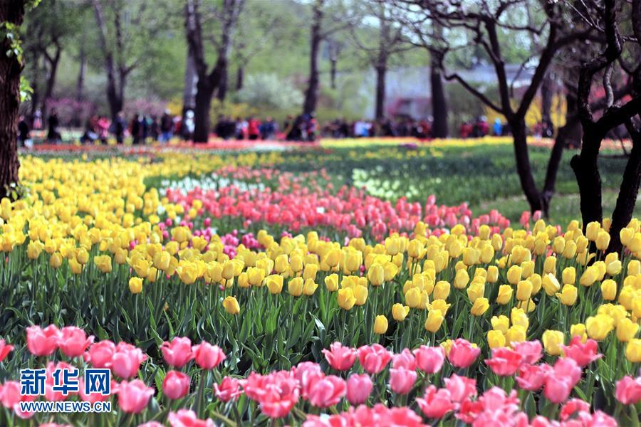北京植物園內盛開的郁金香花(4月11日攝)。近日,北京植物園內的郁金香競相開放,吸引眾多游人前來觀賞。 新華社記者 李明放攝
