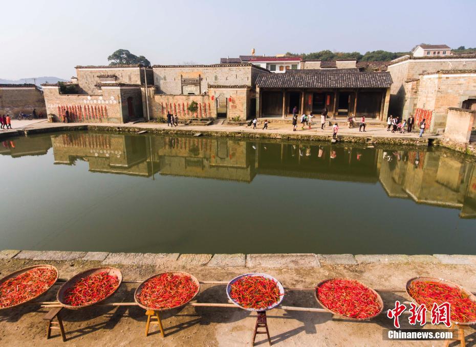 12月10日,航拍位于江西金溪縣有著600多年歷史的中國歷史文化名村、中國傳統(tǒng)村落竹橋古村,俯瞰全村,形似一柄巨扇。該村現(xiàn)保存有明代所建民居8幢,明代祠堂1幢,其余為清代建筑,青磚灰瓦,樸實素雅,為贛派建筑最典型的代表。村前溪水長流,良田萬頃,村后茂林修竹,鳥鳴樹幽,身歷其境,如入畫中。傅建斌 攝