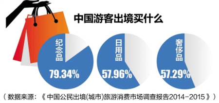 中國游客“買買買”名聲已傳遍全球。LV、Chanel、Hermes、PRADA、Rolex,這些奢侈品名牌服飾、手表店,隨處可見國人身影。而近年來,高端日用品也異軍突起,馬桶蓋、牙膏、電飯煲,甚至鍋碗瓢盆,這些國外超市貨柜上的商品同樣吸引著中國游客。根據(jù)《中國公民出境(城市)旅游消費(fèi)市場調(diào)查報告2014-2015》,近八成的中國游客在境外旅行時會買紀(jì)念品,一半的游客會購買日用品,與購買奢侈品的游客比例持平。