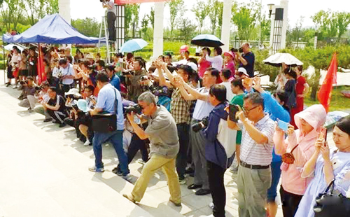 活動(dòng)以“秀美云中河”為主題,以云中河景區(qū)景觀為背景,多方位多視角展示園林獨(dú)特的自然景觀和文化內(nèi)涵,廣泛征集攝影專業(yè)人士和攝影愛(ài)好者捕捉到的云中河景區(qū)生態(tài)綠化、四季景觀、園事花事活動(dòng)、景區(qū)文化生活、休憩娛樂(lè)場(chǎng)景等,體現(xiàn)和展示云中河景區(qū)的發(fā)展成就、人與自然和諧共處的攝影作品。圖為攝影愛(ài)好者現(xiàn)場(chǎng)拍照(記者 徐國(guó)華 攝影報(bào)道)